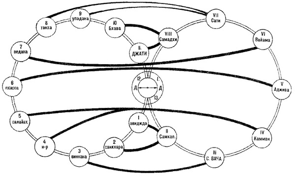 Изображение Благородного Восьмеричного Пути и ее объяснение на примере схем.