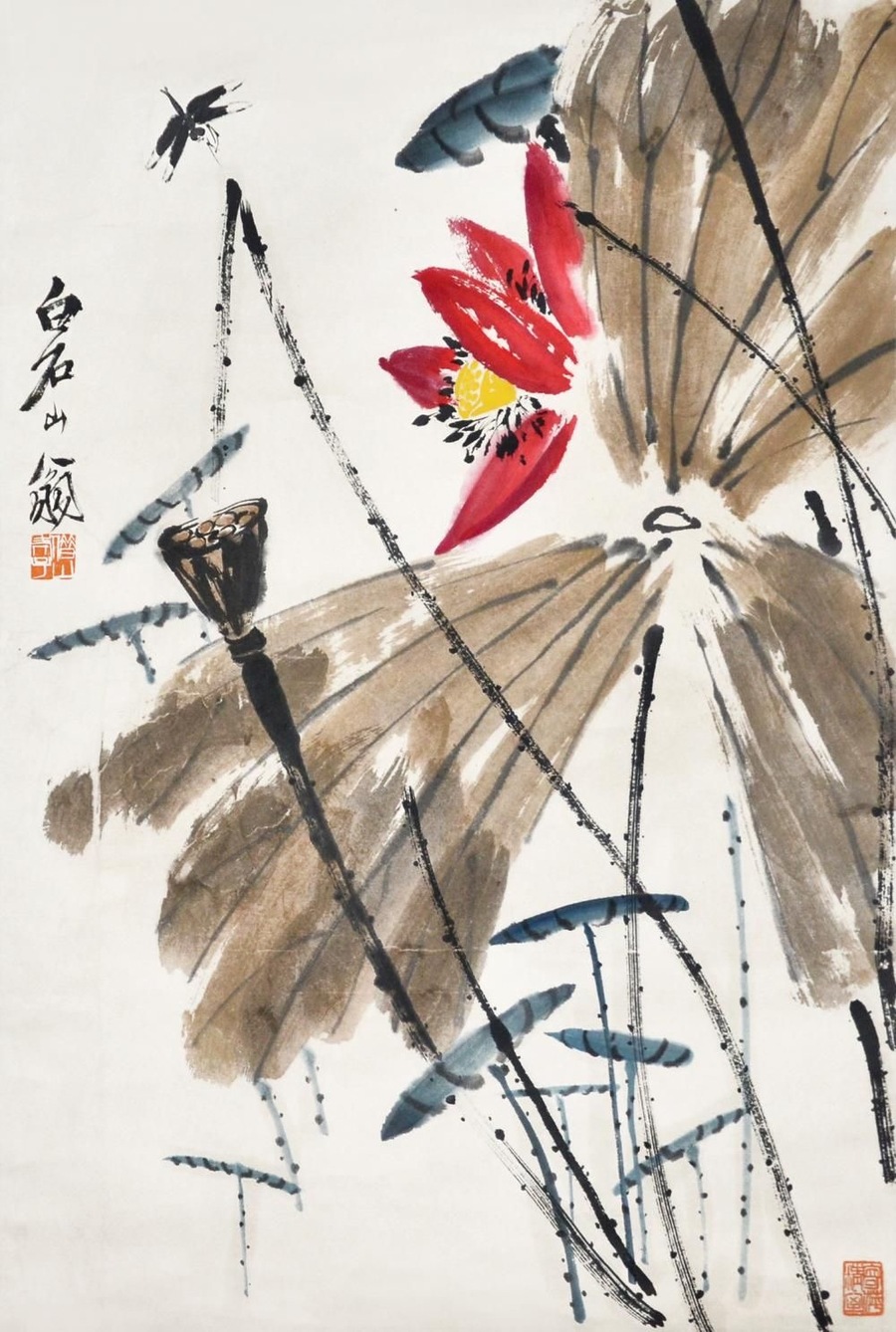 1. Ци Байши (1863-1957). «Лотос и Стрекоза». 2. Жэнь Бонянь «Лотосы и птица».