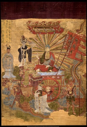 1. Китайский деревянный бодхисаттва из династии Сун (960–1279 гг. н. э.) в позе королевского покоя. 2. Теджапрабха Будда и пять планет [юэ], 897 год н. э.