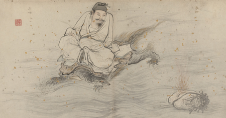 1. Лань Цайхэ из «Восьми бессмертных», из «Альбома восемнадцати даосских картин» Чжан Лу. 2. Даосский философ Лецзы из «Альбома восемнадцати даосских картин».
