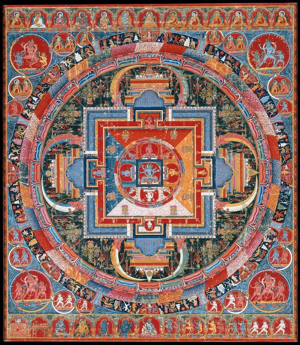 1. Мандала XIV века с изображением Джнянадакини. Тханка. 2. Ямантака, «разрушитель смерти», гневный аспект Манджушри, бодхисаттвы мудрости, XVIII век.