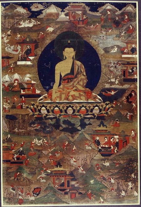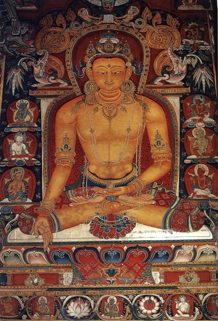 1. Будда Шакьямуни и сцены из его жития. 17в., Британский Музей, Лондон. 2. Ратнасамбхава. Роспись монастыря Шалу. 1306 года.