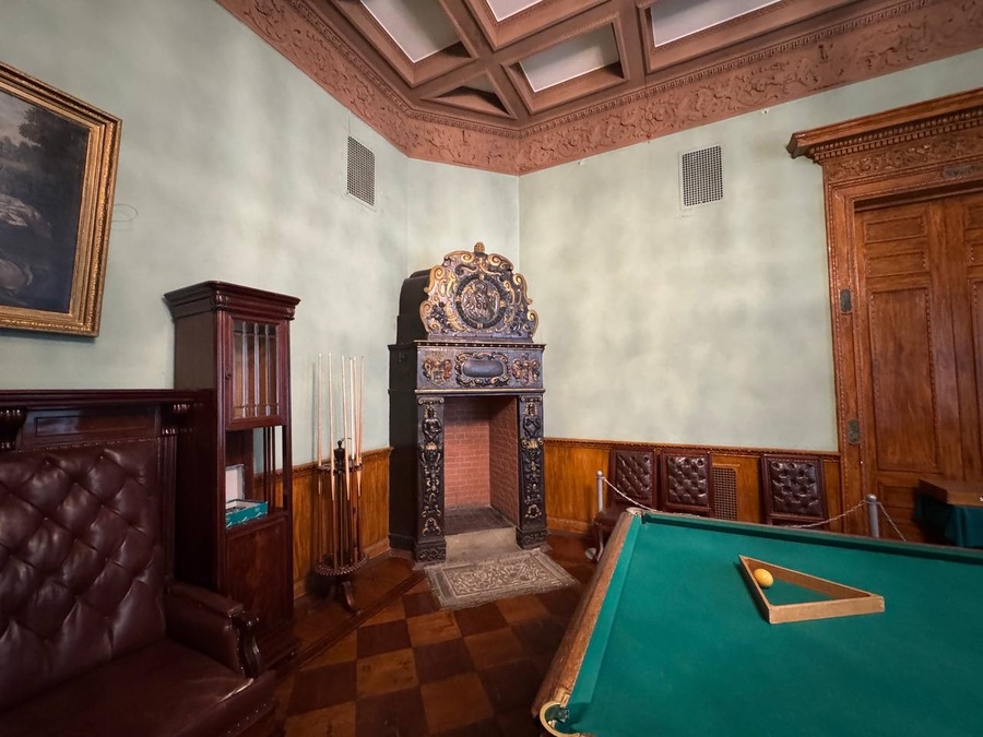 Символы и образы: — исторические интерьеры; — сохранившиеся элементы декора (люстры, буфеты, каминные часы); — скрытые слои истории (надгробная плита основателя рода в основании камина). Акценты: сохранение наследия, связь с дворянскими коллекциями, семейными реликвиями.