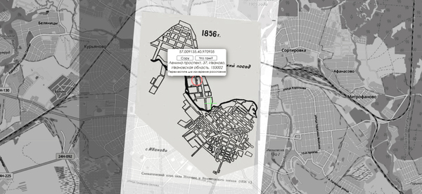Слева: Карта Иваново-Вознесенска, 1856 г Справа: Карта Иваново-Вознесенска, 1935 г