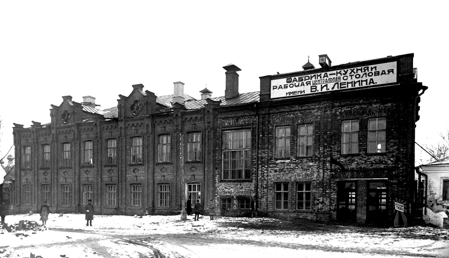 Слева: Фабрика-кухня «Нарпит № 1». Арх. Б. А. Коршунов, М. М. Чураков, 1925 г Справа: Фабрика-кухня «Нарпит № 2», Центральная пл. (ныне пр-т Ленина, 43). Арх. А. А. Журавлев, 1934–1937 гг