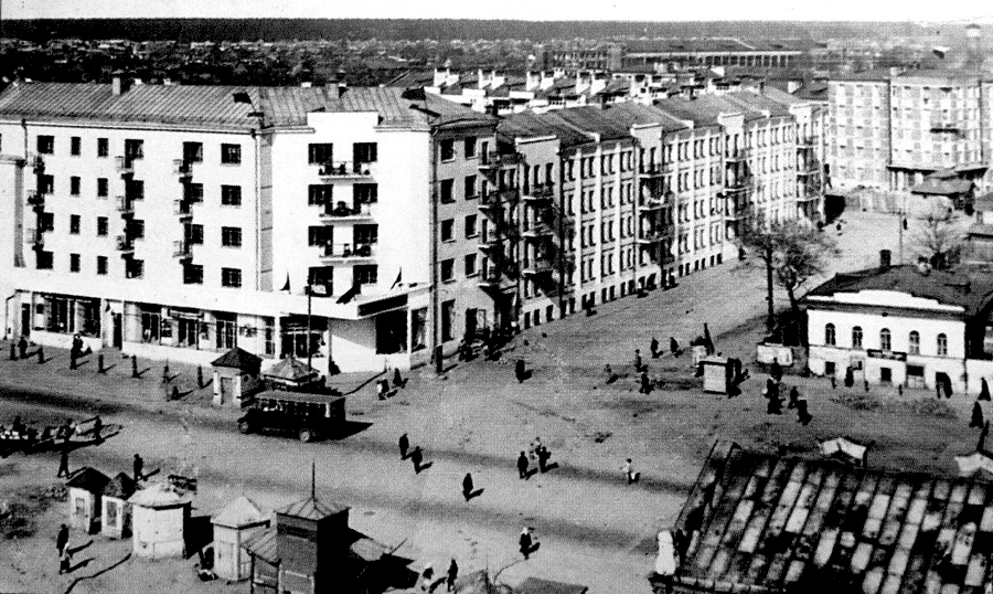 208-квартирный Дом Губжилсоюза. Пересечение улиц Советская (ныне проспект Ленина) и Октябрьская, построен в 1932–1933 гг