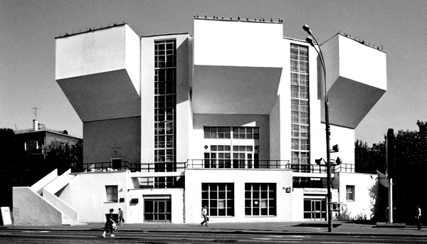 Слева: Первый жилой дом Ленсовета (Ленинград). Арх. Е. А. Левинсон, И. И. Фомин. Построен в 1930–1934 гг Справа: Дом культуры им. И. В. Русакова (Москва). Арх. К. Мельников. Построен в 1927–1929 гг