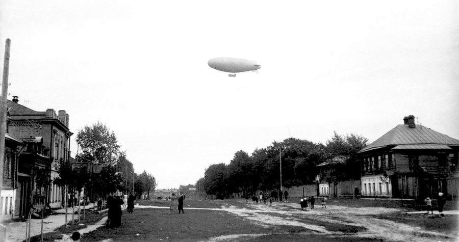 Слева: улица Советская (ныне проспект Ленина), 1932–1934 гг Справа: Дирижабль-В-3 над Иваново, ул. Новодмитреевская, позже Кузнецова, 1930-е гг