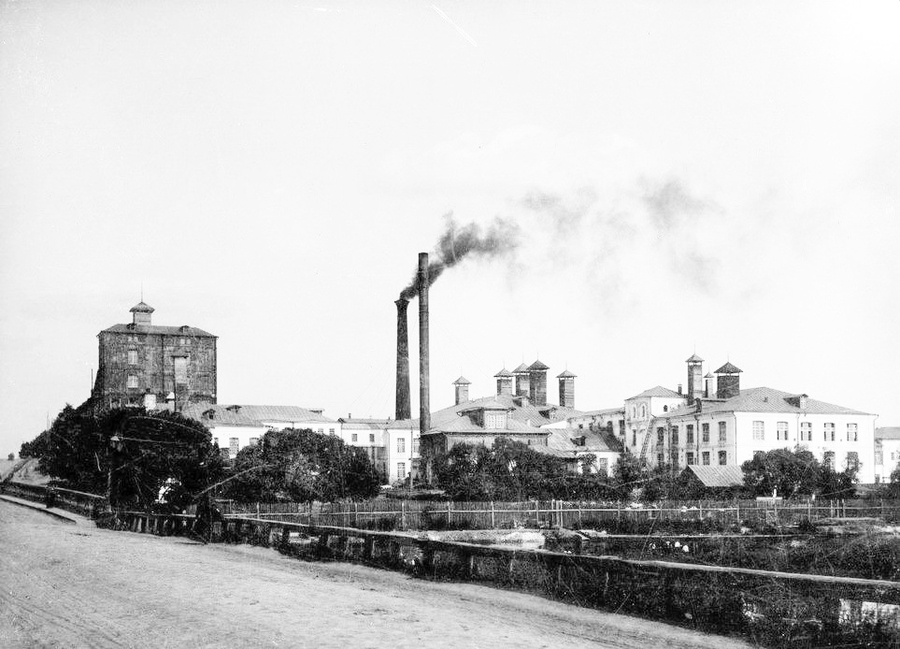 Слева: Фабрика товарищества «Иваново-вознесенской ткацкой мануфактуры», 1895 г Справа: Фабрика товарищества мануфактур «Никанора Дербенёва сыновья», 1900-е гг