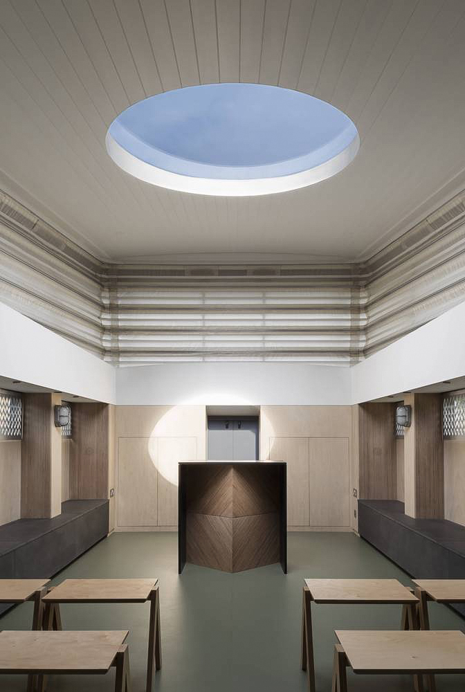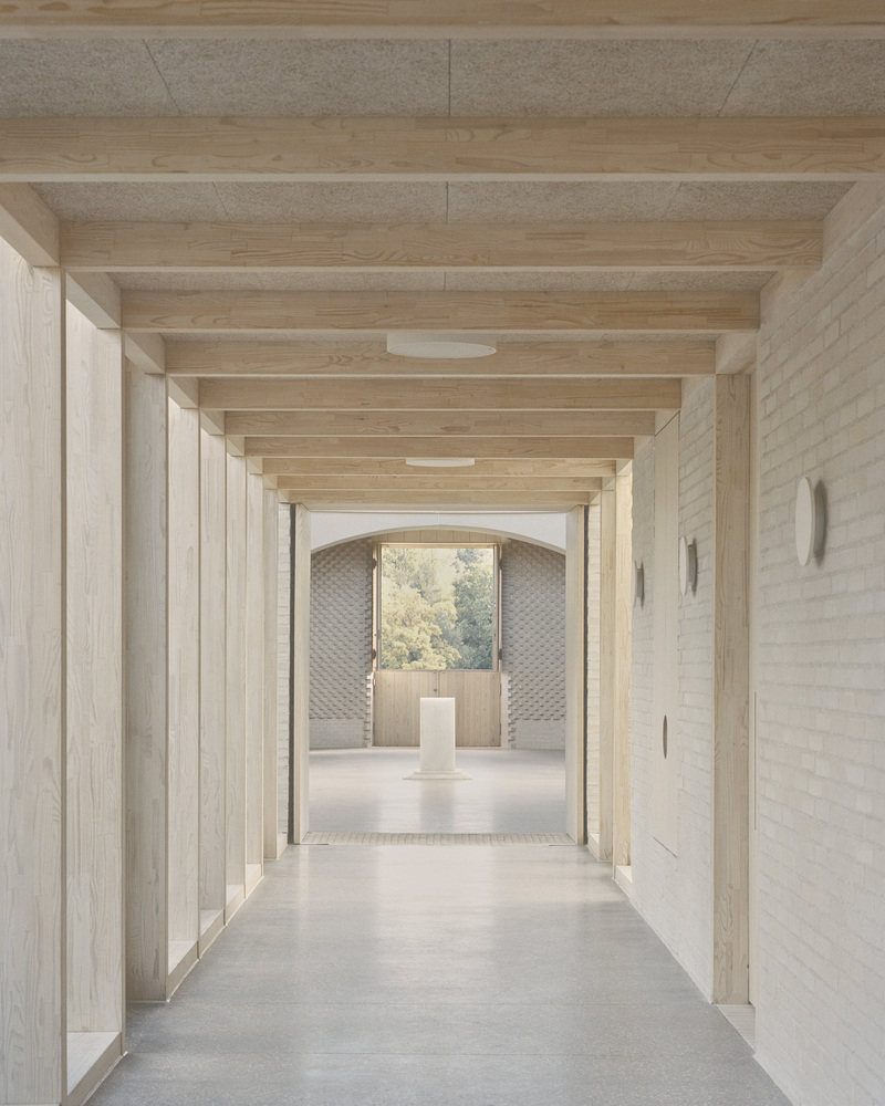 Монументальность остается, но носит другой характер. Масштабность внутренних помещений скрывается простыми, чистыми формами. Само здание как бы приглашает к размышлению о внутреннем, а не к восхищению внешней силой.