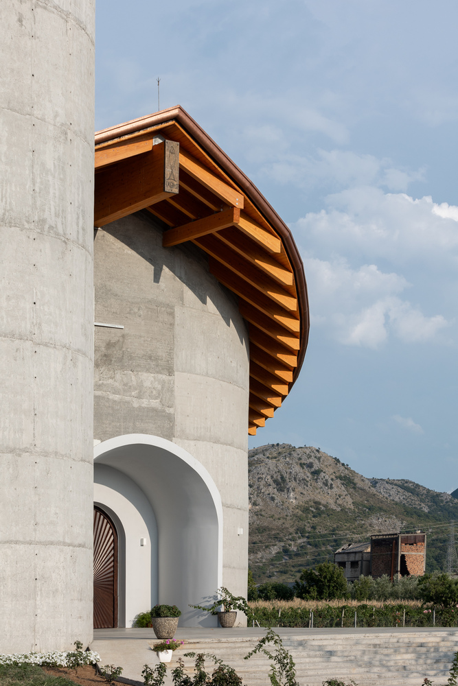 Ключевая идея проекта — максимальная интеграция с природой и создание ощущения абсолютной естественности. Часовня буквально «встроена» в землю, что отсылает нас к образу пещеры — самого древнего и универсального укрытия. В архитектуре используются исключительно натуральные материалы: камень, бетон, земля. Отсутствие обработки и минималистичный дизайн стирают границу между рукотворным сооружением и ландшафтом.