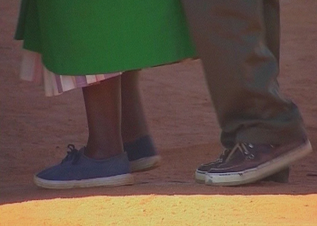 Мошеква Ланга снимал очередь на посадку в автобус в родном Бакенберге с позиции ребёнка, фиксируя только нижнюю часть тел: ноги, обувь, юбки, сумки, пыльную красную землю. По мере того как очередь движется вперёд, в кадре появляются истёртая временем обувь, голая нога без носка, запятнанная юбка, опухшие щиколотки и распухшие от вещей сумки, перемежающиеся с тщательно отутюженными мужскими брюками и начищенными ботинками. Звуки города дополняются фрагментом песни «С чего мне начать» исполнения Ширли Бэсси из фильма «История любви» (1970)13.