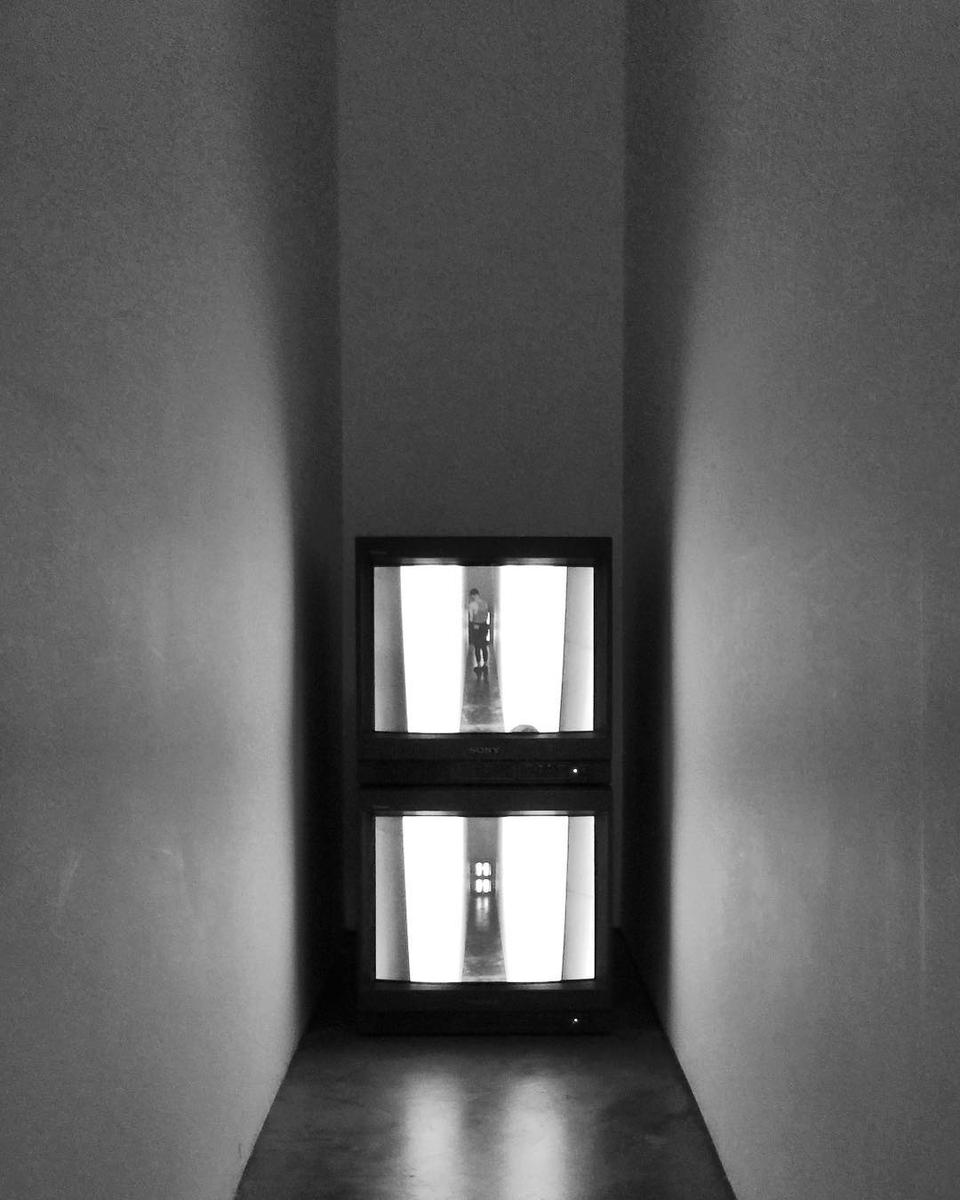 Брюс Науман, «Коридор с видео трансляцией», 1970, вид инсталляции, фото: студия Билла Джейкобсона, Нью Йорк URL: https://i.pinimg.com/originals/18/0f/dc/180fdc83cfef1c82aa27abd934c73855.jpg (дата обращения: 14.12.2025)