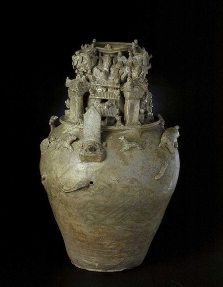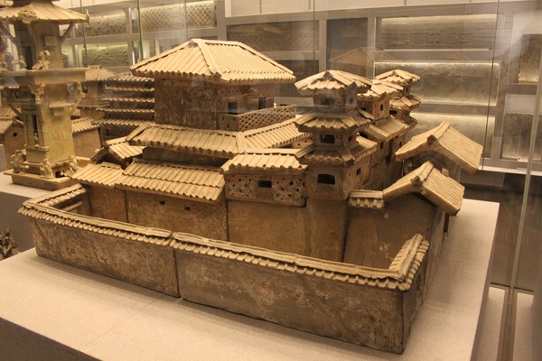 1. Глиняная модель дворца из гробницы династии Хань. 2. Расписная керамическая архитектурная модель. (модель найдена в гробнице эпохи Восточной Хань в Цзяцзо, провинция Хэнань).