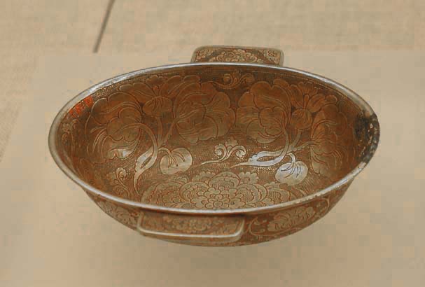 1. Танский чиновник, одетый в ханьфу. Он держит в руках бирку, как будто готовится сделать доклад начальству. Глазированная керамика саньцай. 2. Танская позолоченная серебряная чашечка с цветочным мот