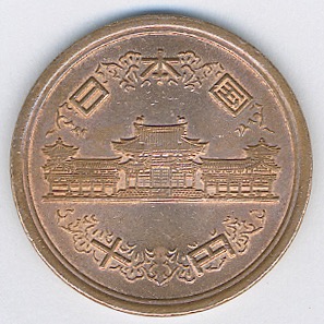 1. Монетка в 10 иен с изображением храма Бёдо-ин. 2. Лотосовый трон будды Амиды из собрания Бёдо-ина.