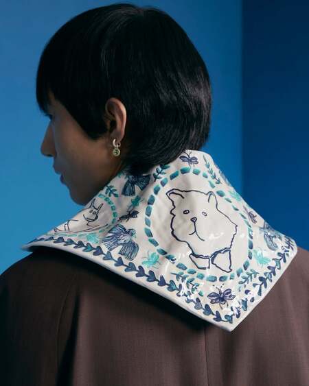 Фарфоровые косынки в мужской коллекции Dior SS 2025 В коллекции Кима Джонса косынки имитируют фарфоровую текстуру с керамическими принтами и скульптурными формами, вдохновлёнными работами Хилтона Нела, подчёркивая слияние ремесла и моды в мужском гардеробе.