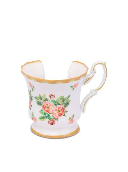 Браслет «Чашка с блюдцем» Moschino 2025 В пре-коллекции FW 2025 браслет в форме чашки с блюдцем из металла с цветочным принтом добавляет сюрреалистический акцент, вдохновлённый чайными мотивами и фирменным юмором бренда.