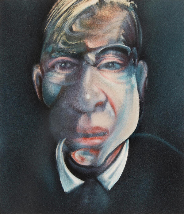 Говоря о распадающейся идентичности, нельзя не вспомнить об автопортретах Френсиса Бэкона. По утверждению художника, он ненавидит своё собственное лицо, но вынужден был рисовать себя, поскольку его модели «умирали как мухи, так что больше некого было рисовать». Зажатая узким чёрным фоном вспухающая голова Бэкона наводит на размышления о его эмоциональном состоянии. Принято считать, что эти этюды 70-летнего Бэкона глубоко психологичны, и связаны с нарастающим ощущением утраты и тоской.
