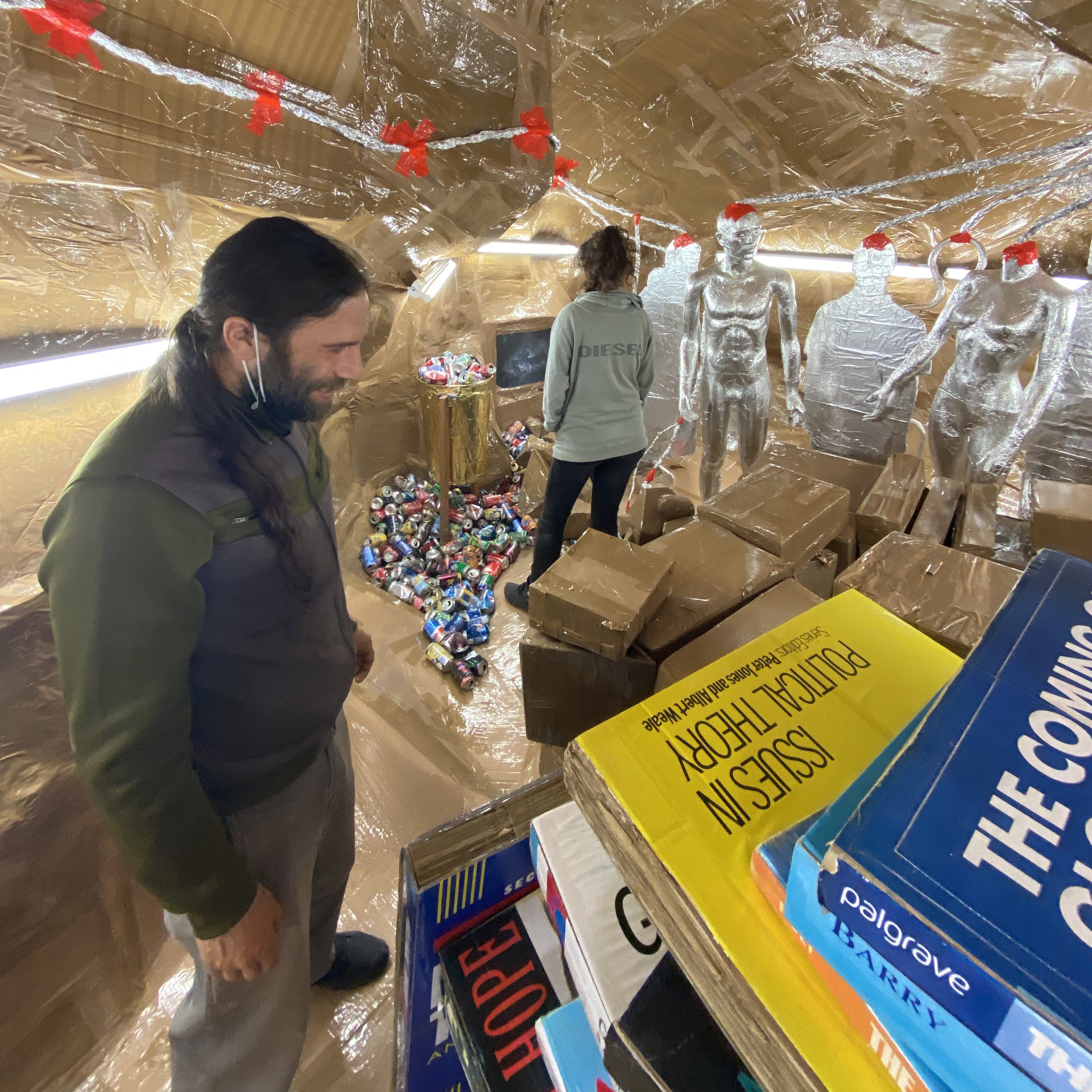 Томас Хиршхорн, «Человек-пещерныйчеловек», (Cavemanman), 2022, вид инсталляции на выставке «Dream On», Неон, Афины, Греция URL: https://www.thomashirschhorn.com/wp-content/uploads/2022/06/post-5-1.jpg (дата обращения: 15.12.2025)