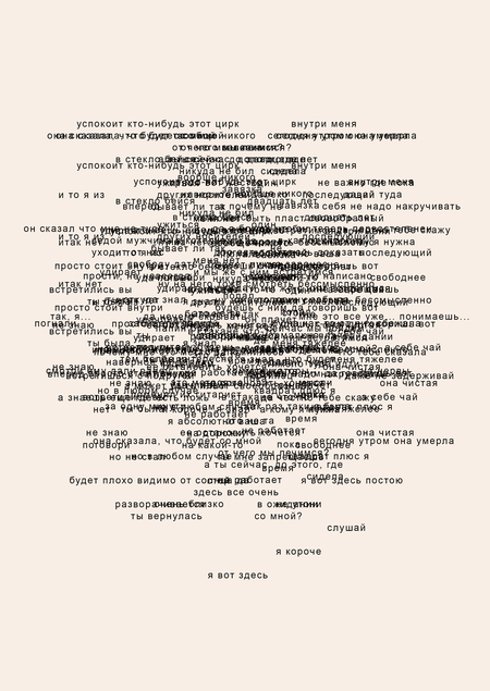 Я не разъединяю на отдельные части зафиксированную фразу, сказанную одним человеком, не меняю порядок слов в ней. Моя задача меняя местами обрывки разговоров создать единое текстовое полотно.