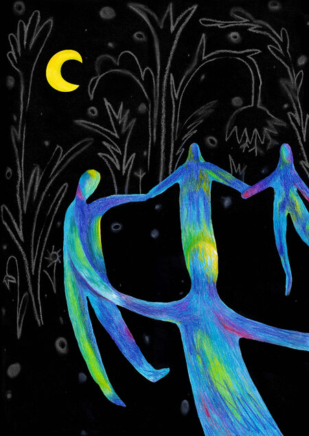 Работы имеют размеры 58×40,6 см и 85×60 см. Для создания серии использовались цветные карандаши, масляную пастель, акрил и тушь.