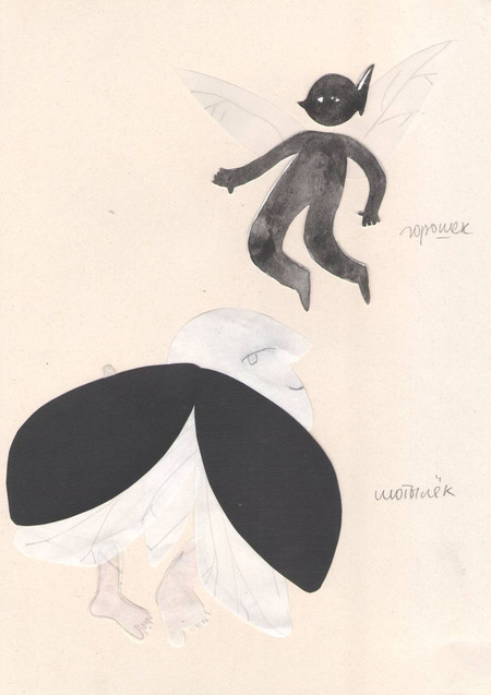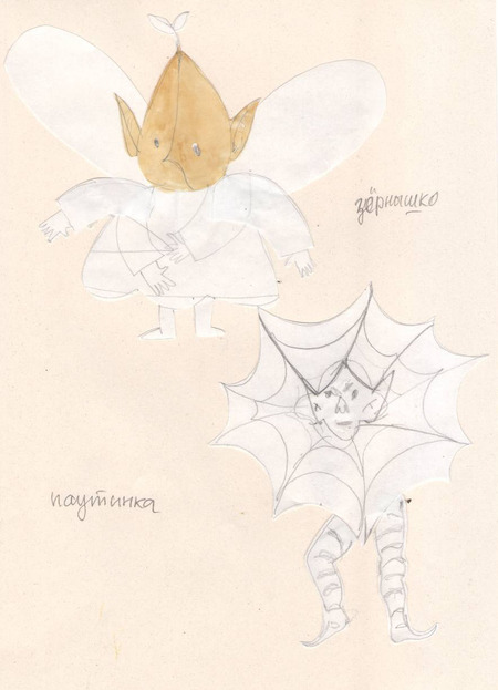 В нашем этюде появляются три феи: Душистый Горошек, Паутинка и Горчичное Зерно, а с персонажем четвертой феи, Мотылька, работали участники мастер-класса и сами придумывали её внешний облик и небольшой сюжет с Основой.