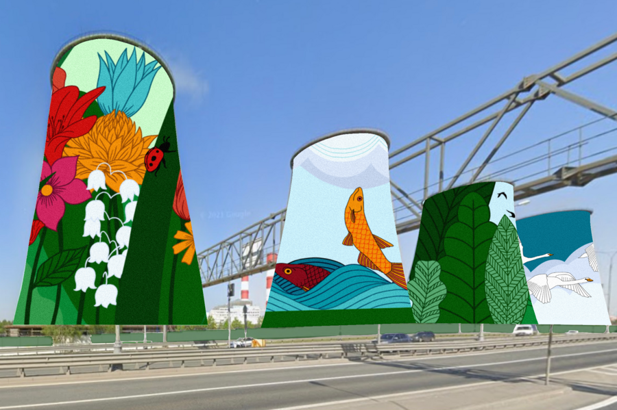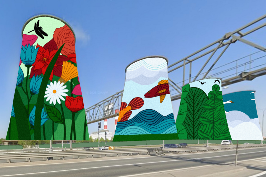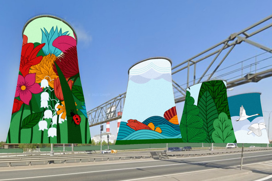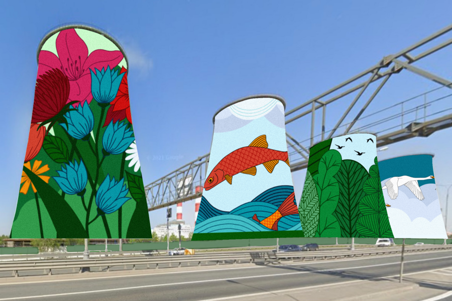Тема модуля — суперграфика. В рамках него мы разрабатывали дизайн градирен теплоэнергоцентралей (далее — ТЭЦ) Москвы. Перед нами стояла задача сделать градирни туристически привлекательными, отразить историю и особенности места (района).