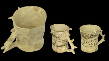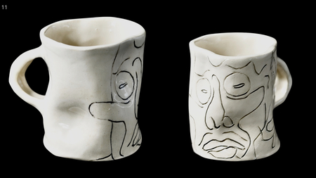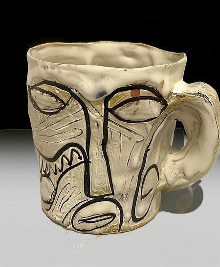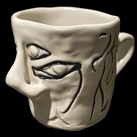 A hand made sloppily made mug. (изображения новых версий кружек были созданы с использованием референсов уже созданных ранее кружек) (+ blend) (а также функция вариации vary strong, remix)