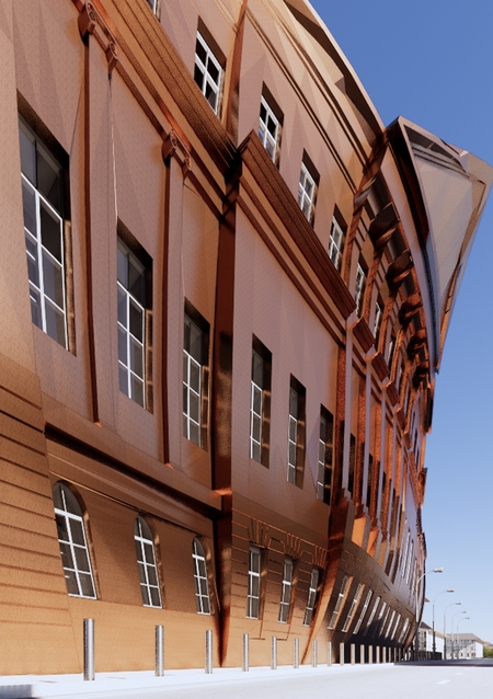Он считал, что природа и есть искусство. Поэтому 3д фасад был изменён так, чтобы было видно его первоначальное состояние, и отчетливо читались изменения.