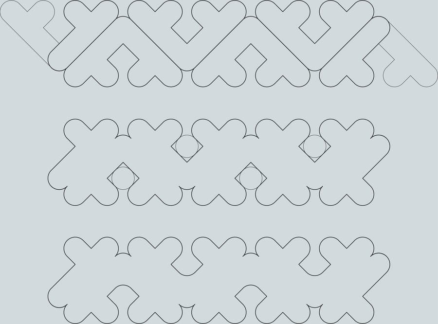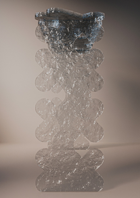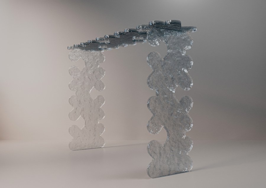 В основе — орнамент «оленьи рога», который получил скруглённые углы. Детали консоли — столешница и ножка — собираются из одной основной формы орнамента