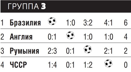 В первом матче бразильцы смяли отчаянно сопротивлявшихся чехословаков, но во втором им предстояла встреча с действующими чемпионами мира. Англичане сохранили костяк команды, четыре года назад добившейся успеха у себя на родине. Однако тяжелые природные условия Мексики — жара и разреженный на высоте воздух — сказались на действиях постаревших лидеров. Победы над сборными Румынии и ЧССР дались англичанам нелегко. Главный же матч группового турнира — против бразильцев — они с минимальным счетом проиграли. Как поспешили отметить британские газеты, уступили, сохранив достоинство. Мастерству бразильцев англичане противопоставили игровую дисциплину, борьбу на каждом участке поля, а также резкие контратаки. Но на 59-й минуте южноамериканцы провели показательный штурм: Тостао нашел точным пасом Пеле, а тот моментально выложил мяч под удар надвигавшемуся справа Жаирзиньо. Лучший бомбардир бразильцев мощно и точно пробил в дальний угол.