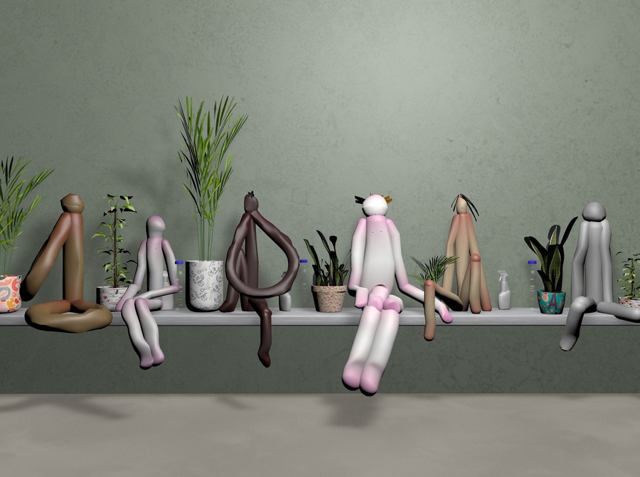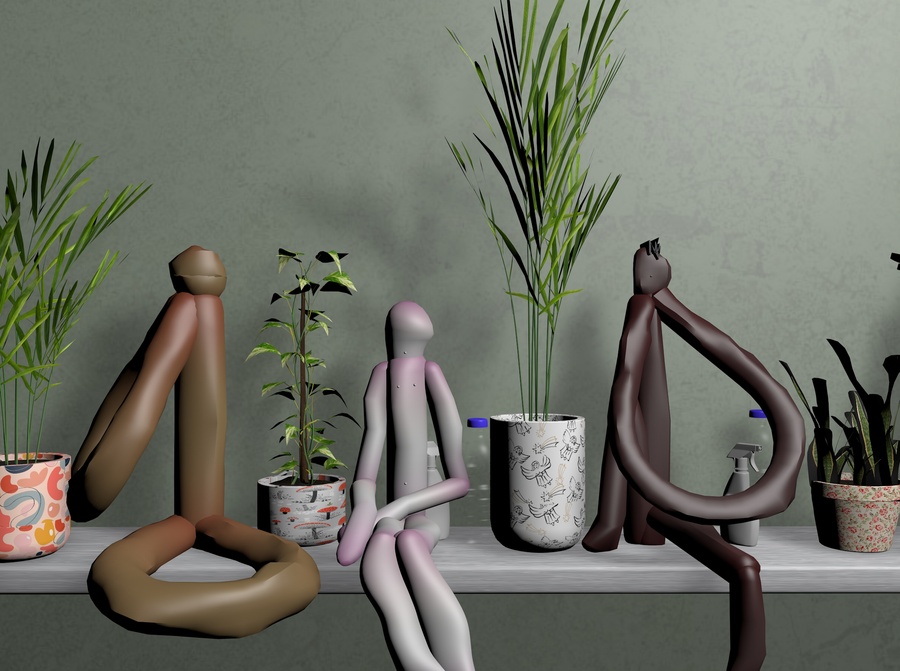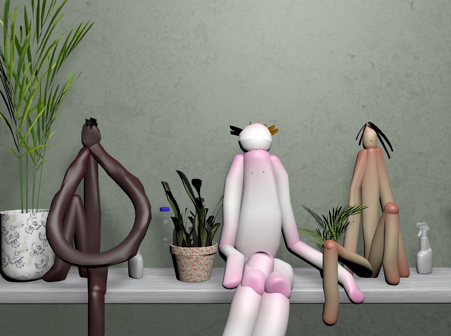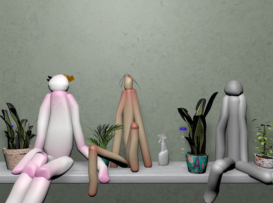 В инсталляции объекты помещаются в одну среду с растениями, которые не соответствуют норме. И объекты, и растения располагаются на поверхности подоконника, который можно часто встретить в различных общественных пространствах. Подоконник обозначает общество, общественное пространство, в которое вписываются несовершенные, но индивидуальные растения и тела.