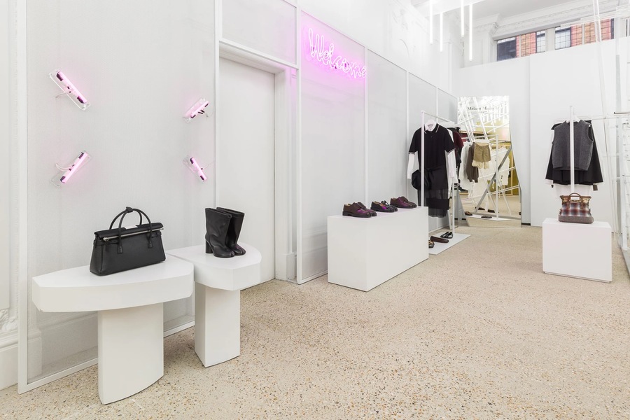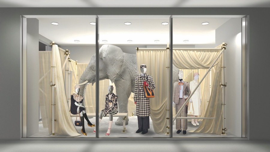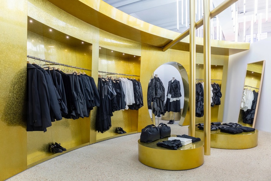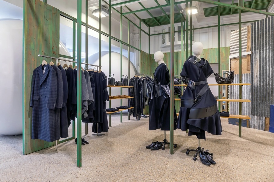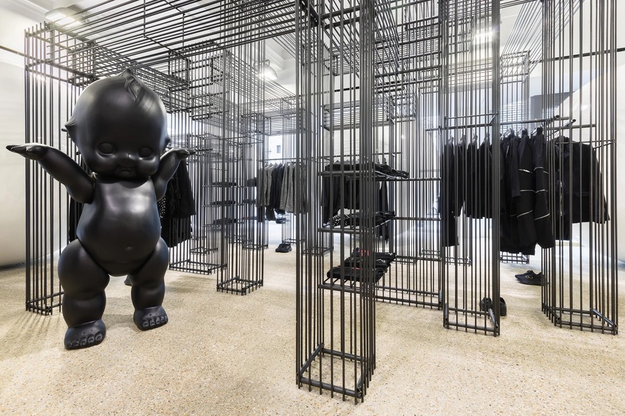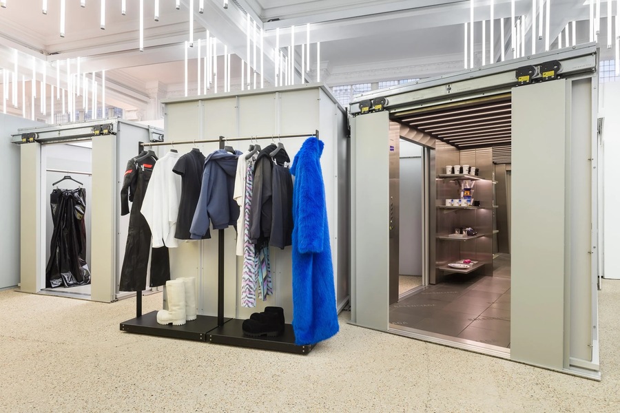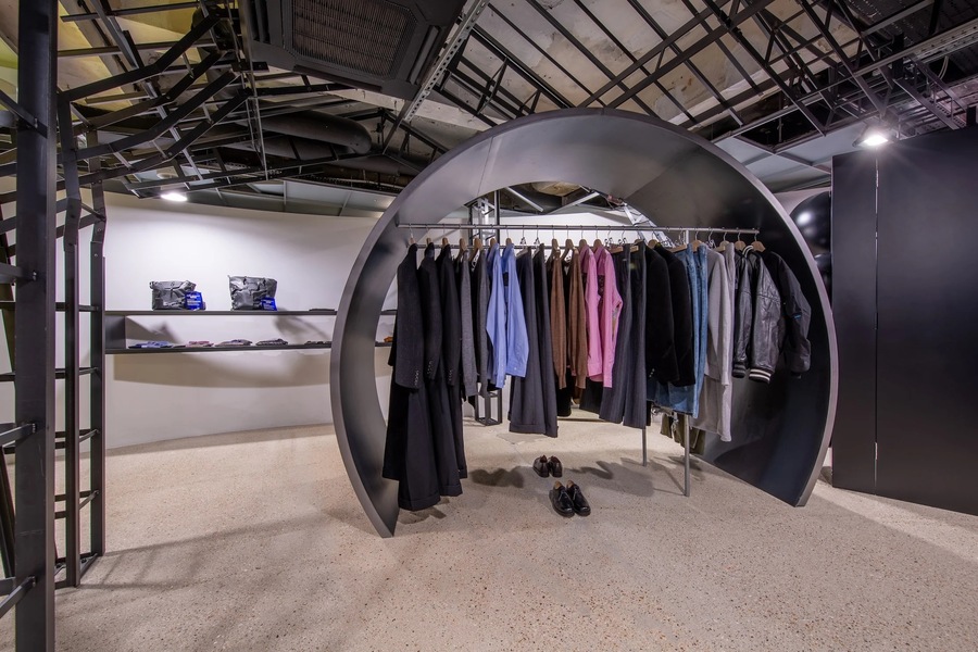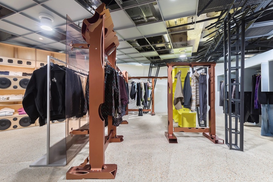 Одной из ключевых особенностей DSM является визуальная идентичность, выраженная в динамичном, постоянно меняющемся, от сезона к сезону, пространстве, где все аспекты покупки одежды сливаются в единую визуальную композицию.