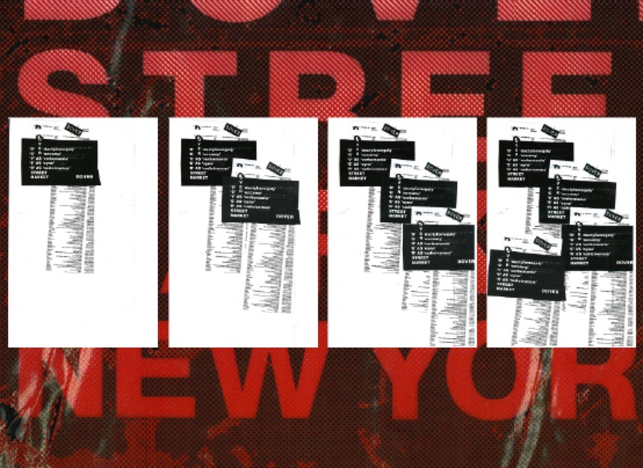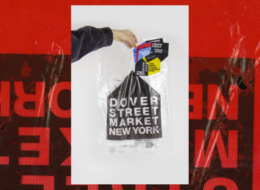 Визуальная идентичность так же выражена в плакатах и постерах Dover Street Market.