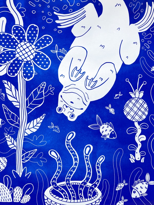 Темой стали существа из славянской мифологии. Поскольку в качестве носителей я решила выбрать детский текстиль, мне показалось интересным познакомить малышей как с фольклорной, так и с визуальной культурой. Гжель часто обращается к персонажам, поэтому мне такой подход показался не слишком радикальным. Я изучила привычные для гжели узоры и применила их в иллюстрациях, сочетая с более озорными фантастическими растительными формами.