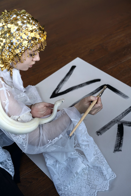 Проект «VER SACRUM» — это воплощение Священной весны искусства, модернистского художественного движения «Сецессион». Головной убор, сшитый из шуршащего золотого монисто, символизирующий золотой шар на доме сецессиона в Вене, — это метафора раскола и возникновения нового искусства, независимого, бунтующего и пленительного, рождения новых идей и их свободного, дерзкого выхода за пределы головы и музейных стен.