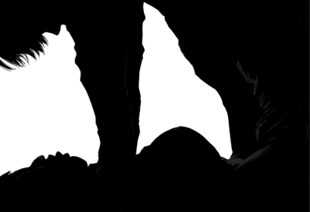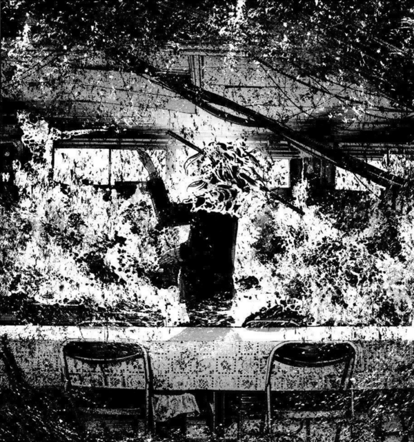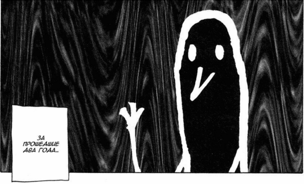 После середины манги цвета на разворотах становятся темнее, а тени глубже и чернее, создавая тревожную картинку.