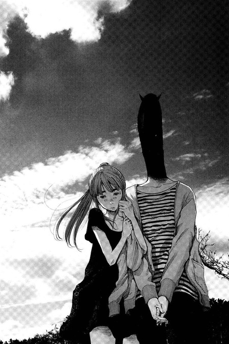 Когда Пунпун убивает мать Айко, он превращается в самую страшную версию себя, где в его душе нет предела ненависти к себе и к окружающему миру. Он лишается лица, а на голове образуются бычьи рога.
