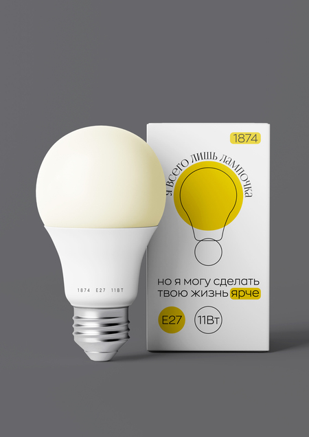 Простая лампочка — один из тех бытовых предметов, о существовании которых мы вспоминаем только когда они выходят из строя. Поэтому, пришла идея написать на коробке фразы «я всего лишь лампочка» и «но я могу сделать твою жизнь ярче», которые можно воспринимать и буквально, и метафорически.