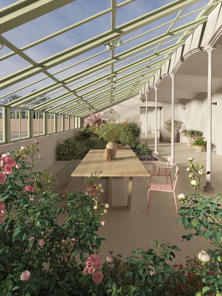 Правое крыло оранжереи является продолжением общественной зоны и доступно для посещения. Здесь можно пройти различные мастер классы, мы предусмотрели несколько комфортных зон: большой рабочий стол между цветниками, нам хотелось добавить декоративных акцентов, поэтому напротив рабочей зоны мы установили рукомойники, которые создадут удобство как для работников оранжереи, так и для посетителей. Во внутренних помещениях располагаются землехранилище, производственная лаборатория и лекторий. В лектории проводятся лекции, мастер-классы, встречи по интересам.
