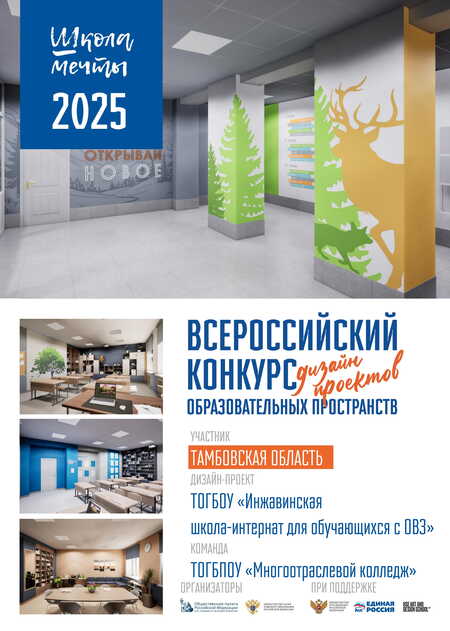 Столовая является важным элементом школьной инфраструктуры. В интерьере ярко прослеживается основная идея всего проекта «Геометрия в линиях», основным элементом декора которой, является настенная роспись, выполненная в простых геометрических формах.