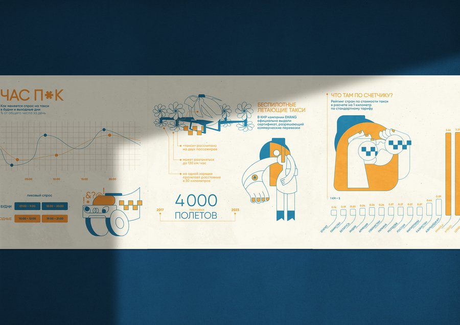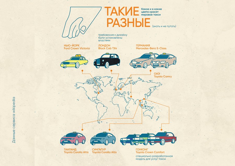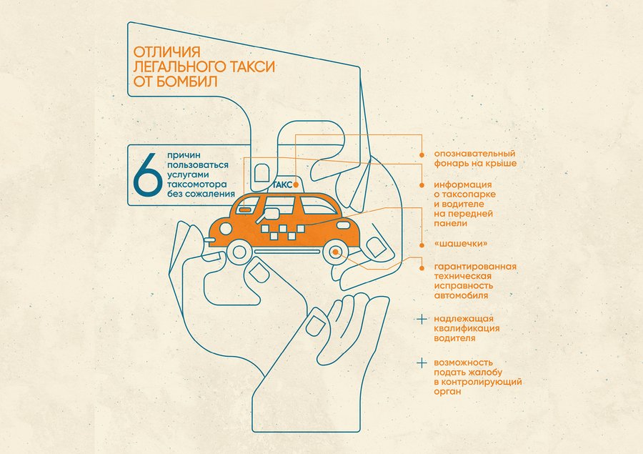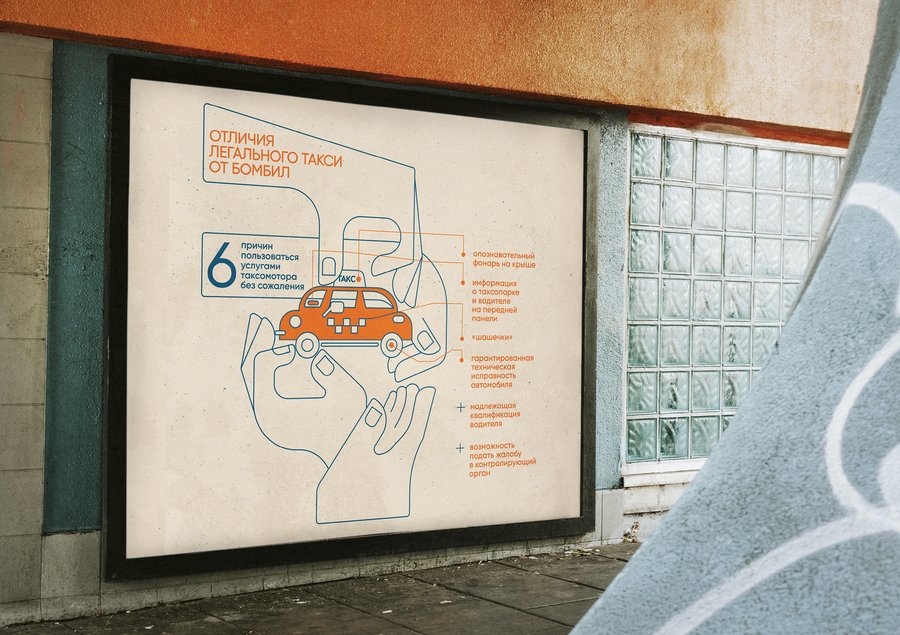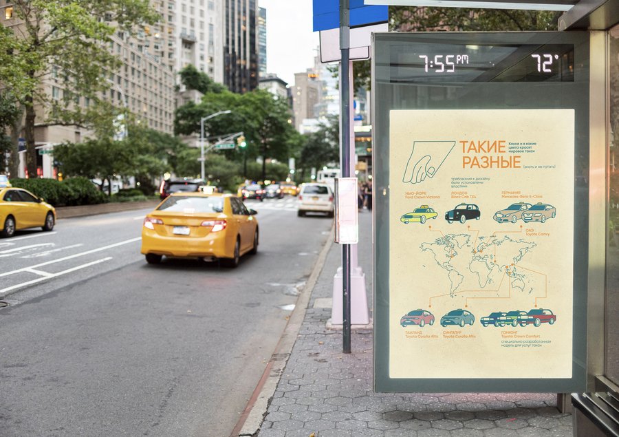 Информационно-просветительский проект, который представляет из себя серию из пяти постеров, посвященных любимому транспортному сервису — такси.