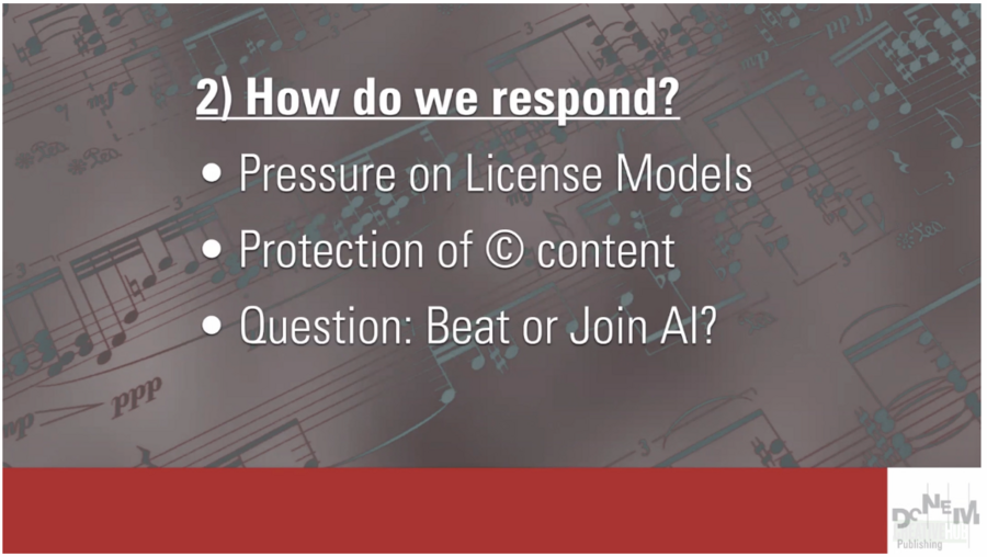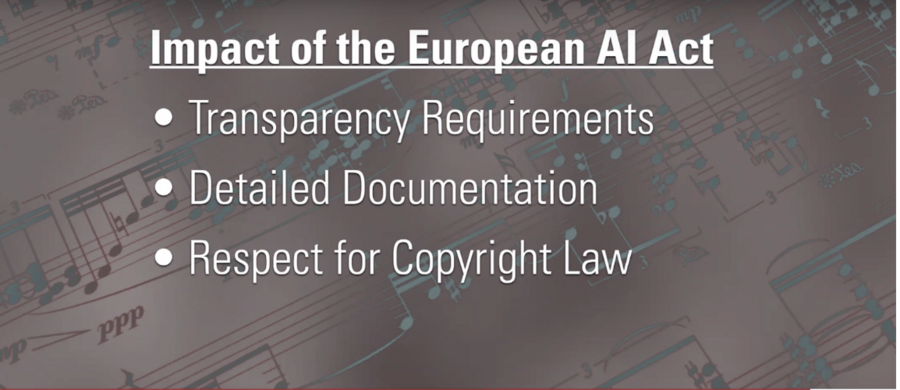 Комментируя нововведения в законодательные акты Евросоюза о взаимодействии с искусственным интеллектом, Даво ван Пеурсен пояснил, что новые регулирующие нормы требуют большей прозрачности и соблюдения законодательства об авторском праве. С другой стороны исполнительный директор Donemus Publishing указал на встречные инициативы рекорд-лейблов в установлении сотрудничества между музыкальными нейросетями и артистами. Ежедневно в стриминг попадает 100,000 новых саундтреков, а с активным использованием музыкальных ИИ-сервисов видеохостинги и потоковые сервисы будут получать ещё большее количество музыкального контента.