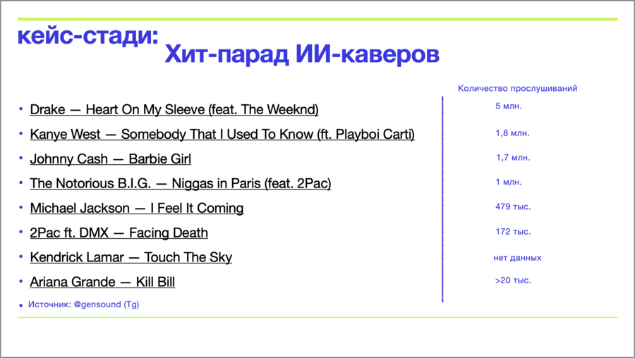 «Ящик Пандоры открылся — кто-то это показал, и сейчас просто ради эксперимента фанаты и целые фан-сообщества продолжают создавать кавер-версии, используя голосовые модели популярных артистов».
