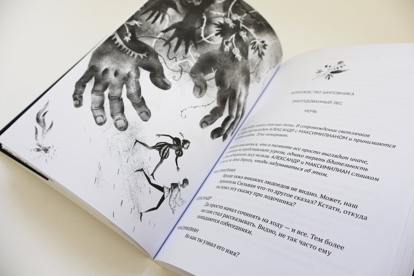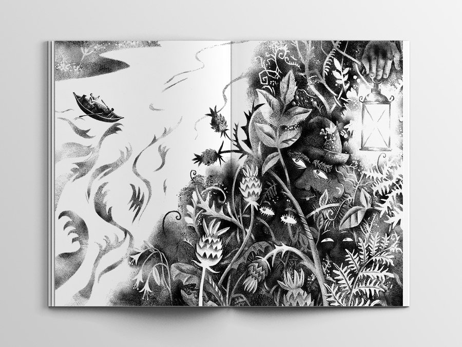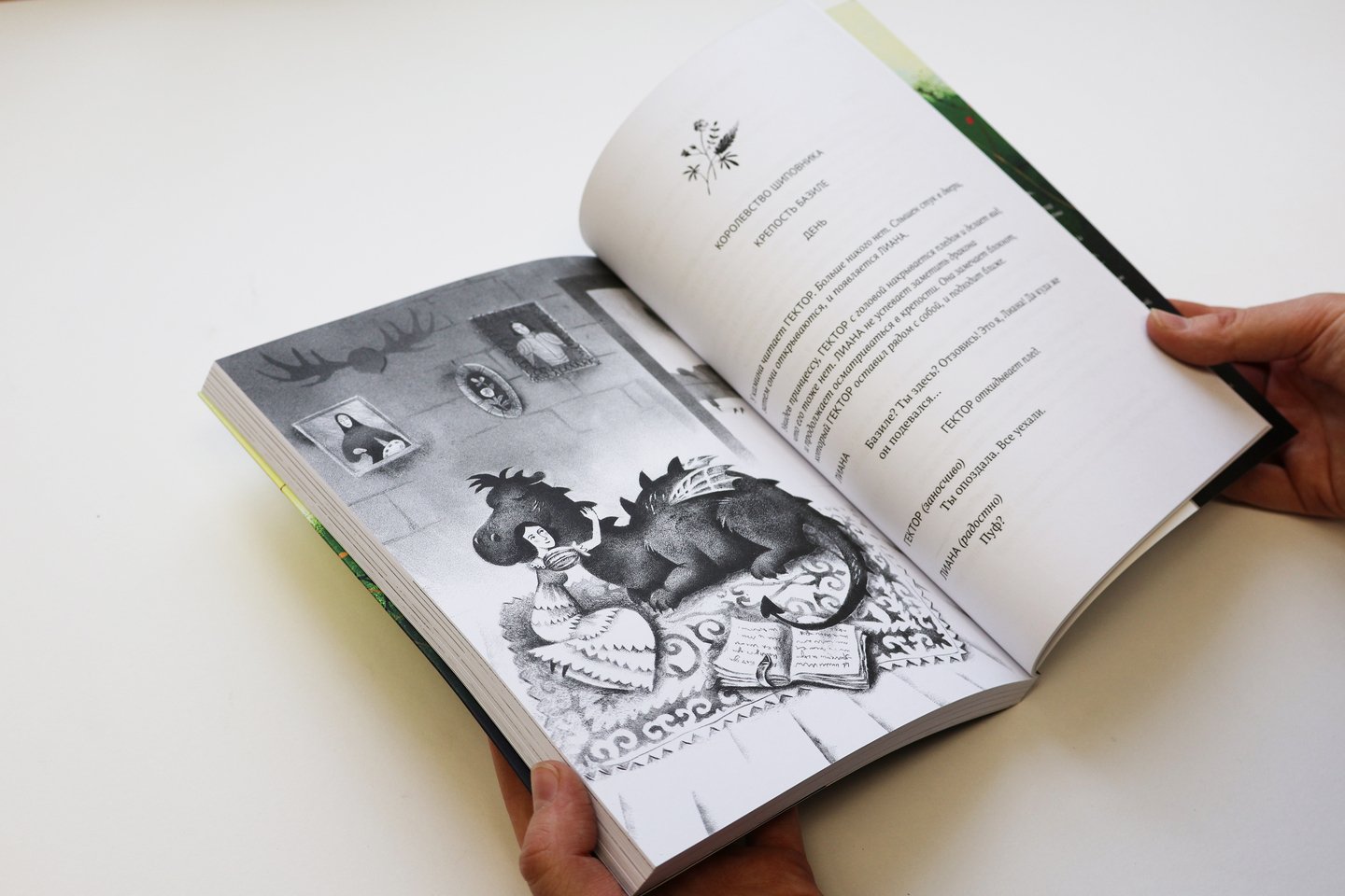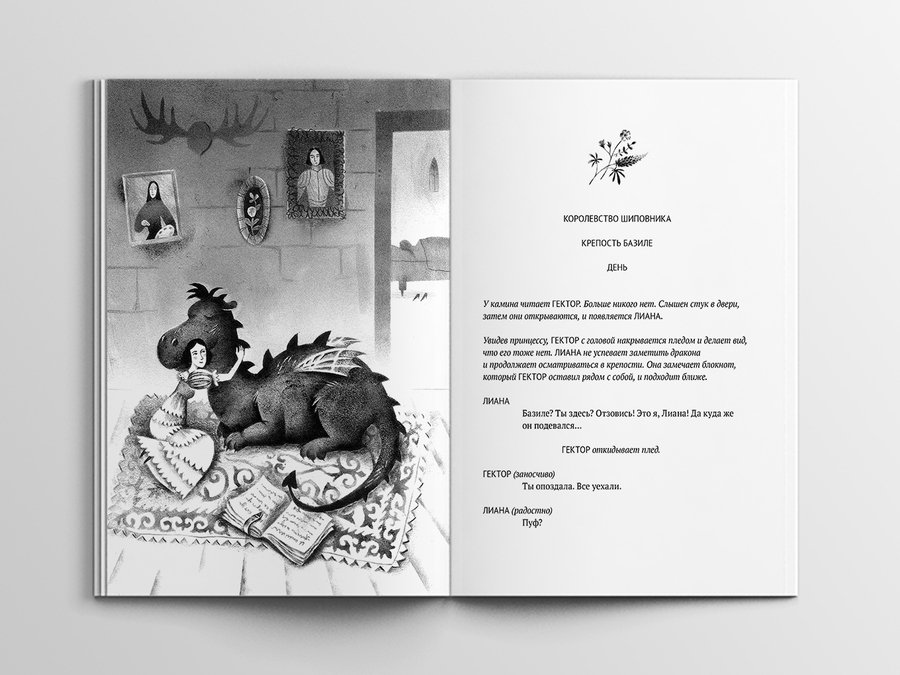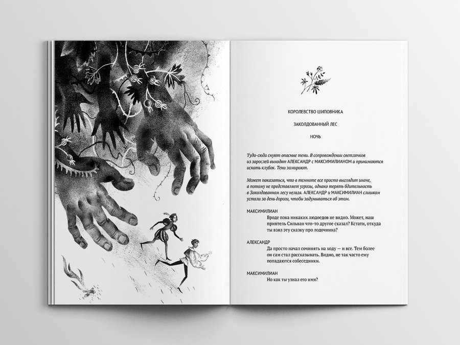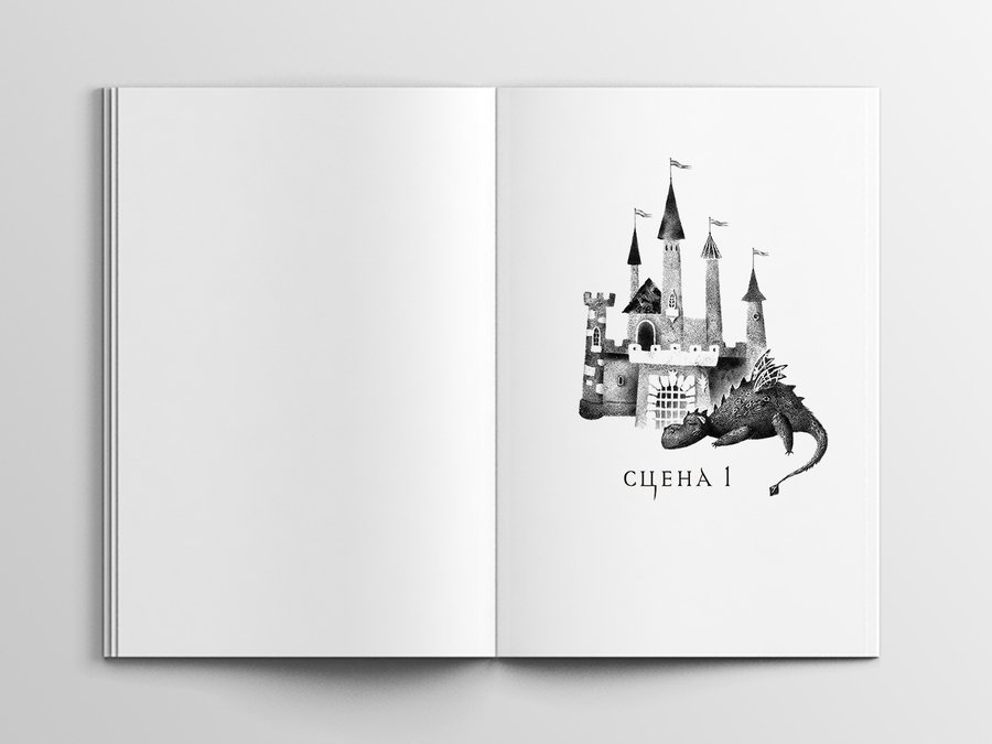 The world of the fairy-tale combines technical progress and wizardry. So it was important to accordingly illustrate inventions inspired by Leonardo da Vinci, as well as the magical aura of adventures and true love. The style of the illustrations refer to Medieval engravings. Their expressiveness is achieved through high contrast of silhouettes, textural saturation, and concise composition.