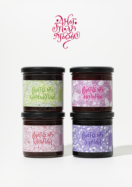 Наше варенье — современный продукт, в котором осталась связь с корнями. Оно будет выделяться на полках, т. к. скоропись еще не вошла в массы. На первый взгляд кажется, что надпись сложно прочитать, но по картинке догадываешься о чем речь и распутываешь текст. Хочется приучать зрителя к таким надписям, чтобы люди заинтересовались своей историей.