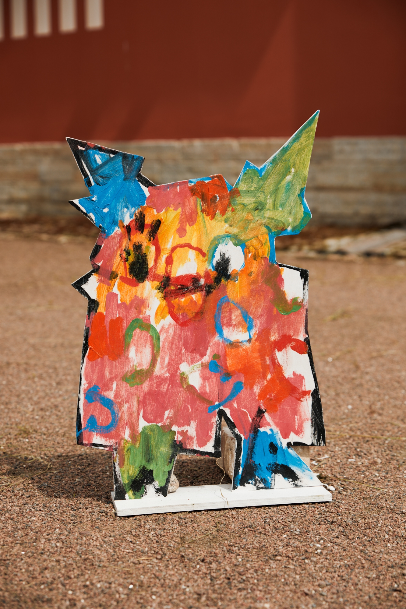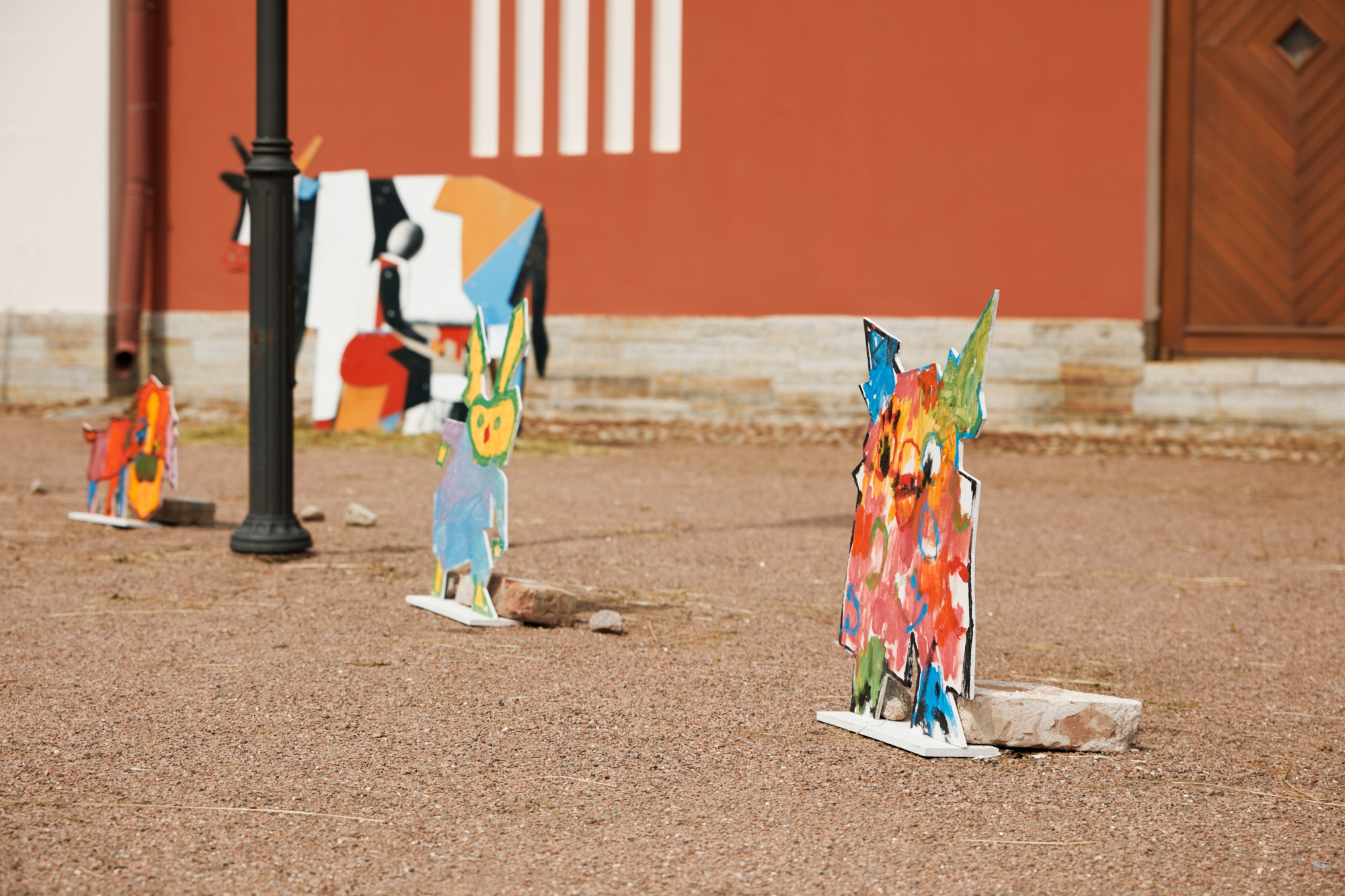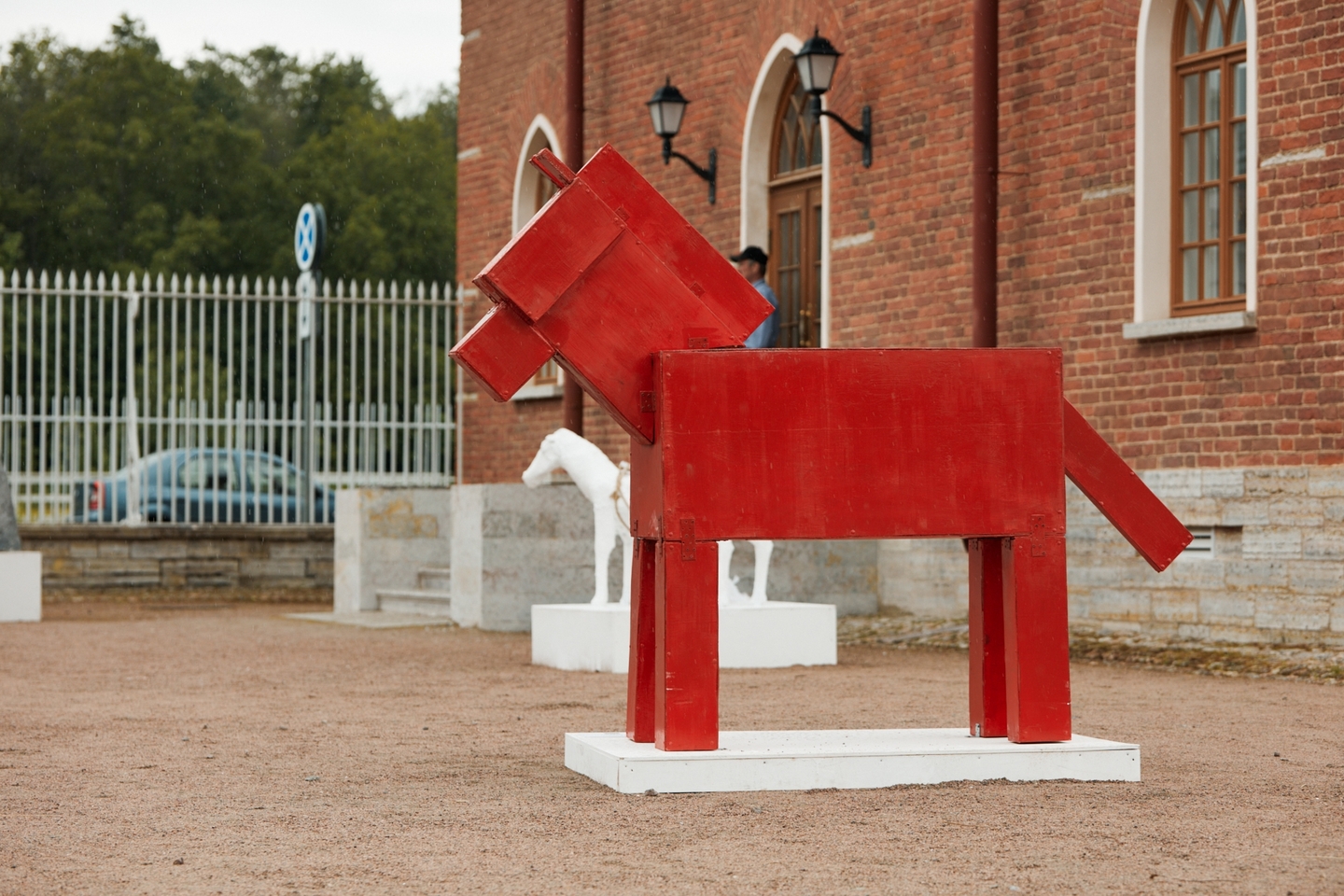 Работы выполнены из простых и привычных материалов — дерева, текстиля, пластика и металла. Благодаря крупным масштабам арт-объектов и отсутствию привычных музейных границ зрители смогут почувствовать себя частью экспозиции, рассматривая произведения не изолированно, а в контексте исторических построек Императорской фермы.