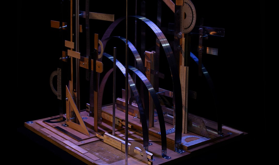 Главная идея проекта «Композиция № 59» — показать взаимоотношение между чертежными инструментами и сложной абстрактной формой, гармонию между материальными предметами и искусством.