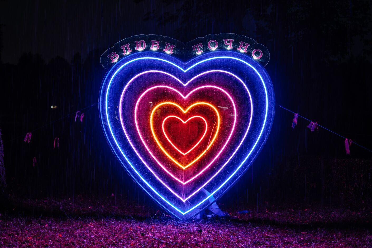 Идея отталкивалась от расположения фестиваля — острова Любви в Гатчинском парке и обыгрывает современное отношение к влюбленности, ее геймификации. Инсталляция является интерактивной: позволяет каждому зрителю почувствовать себя Купидоном и выстрелить в сердце.